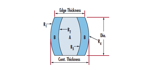 三胶合消色差透镜设计用于 1:1 共轭比,利用对称性校正像差。三合消色差透镜是在两个相同的高折射率外部元件之间,粘合一个低折射率中心元件制作而成。每个透镜在增加视场时,以合理的像差校正,以逐渐接近 f 值。