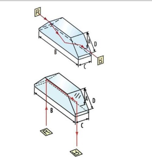 棱镜,一种由两两相交但彼此均不平行的平面围成的透明物体,用以分光或使光束发生色散。棱镜是透明材料(如K9,石英,等)做成的多面体,是重要的光学元件。光线入射出射的平面叫侧面,与侧面垂直的平面叫主截面。根据主截面的形状可分成三棱镜、直角棱镜、五角棱镜、角锥棱镜等。例如,在光谱仪器中把复合光分解为光谱的“色散棱镜”,较常用的是等边三棱镜;在潜望镜、双目望远镜等仪器中改变光的进行方向,从而调整其成像位置的称“全反射棱镜”,一般都采用直角棱镜。